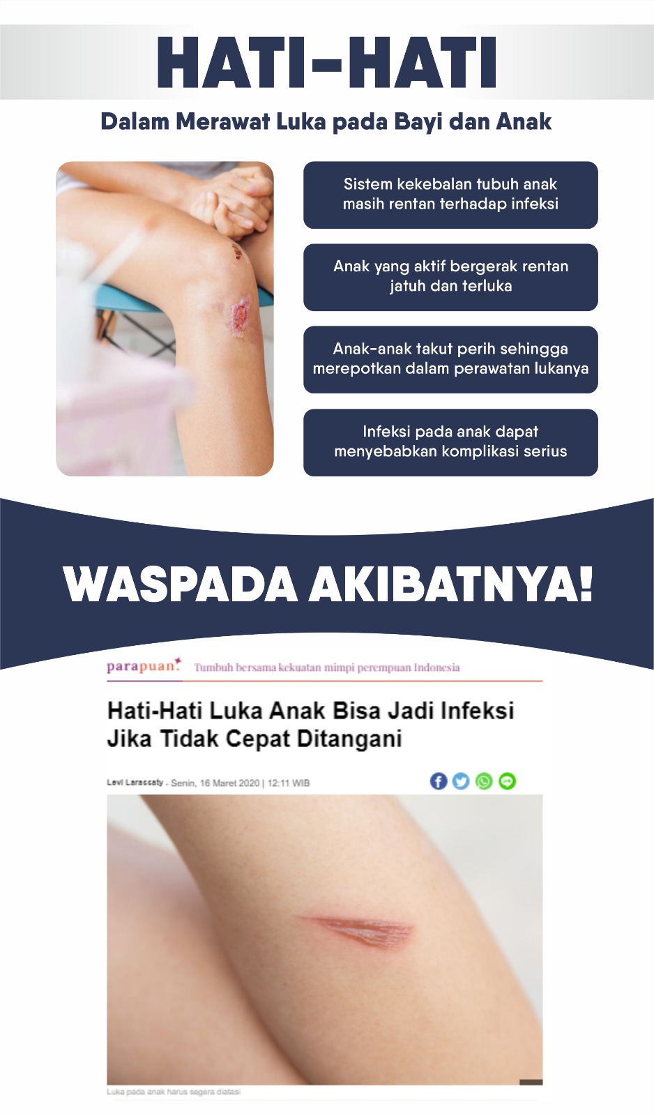 Tenang… Kami Punya Solusinya! SAFE WOUND Antiseptik Obat Luka Bayi dan Anak. Kandungan HOCl efektif membunuh virus & bakteri pada luka yang dapat menyebabkan infeksi